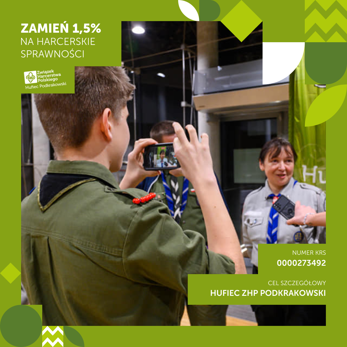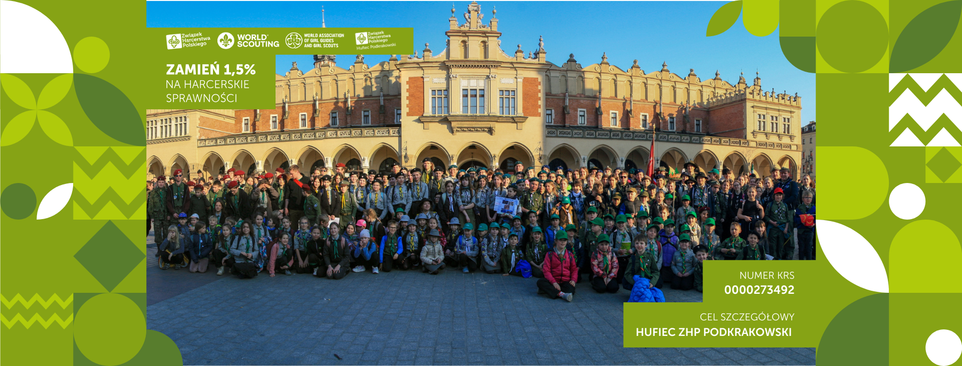 Związek Harcerstwa Polskiego Chorągiew Krakowska Hufiec Podkrakowski jest na liście organizacji pożytku publicznego, na które możesz przekazać swoje 1,5% podatku. Wystarczy, ze zalogujesz się do Portalu Podatkowego i wskażesz ZHP w PIT 37 lub PIT 38, jako organizacje, której chcesz przekazać swój 1,5%.